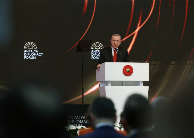 Cumhurbaşkanı Recep Tayyip Erdoğan, Antalya Diplomasi Forumu’nda katılımcılara hitap etti. Gündeme ilişkin açıklamalarda bulunan Erdoğan konuşmasında, Gazze’de katliam yapan İsrail’e tepkisini bir kez daha dile getirdi.